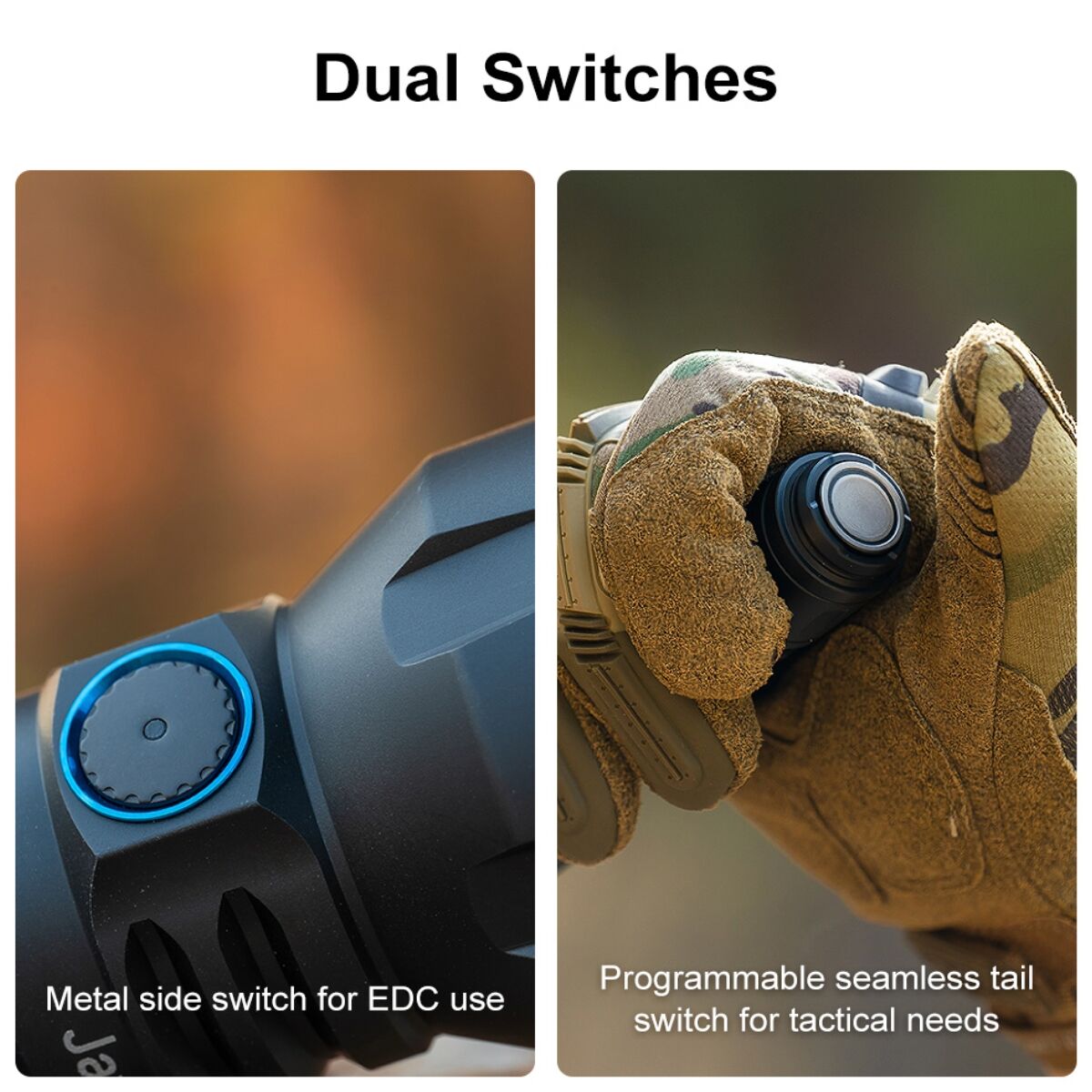 The dual-switch design makes it intuitive to operate - the metal side switch is perfect for everyday brightness control, while the programmable tail switch allows for rapid activation in tactical scenarios. Whether you're carrying it clipped to your belt or mounting it with a remote switch, the Javelot is built for performance and versatility.