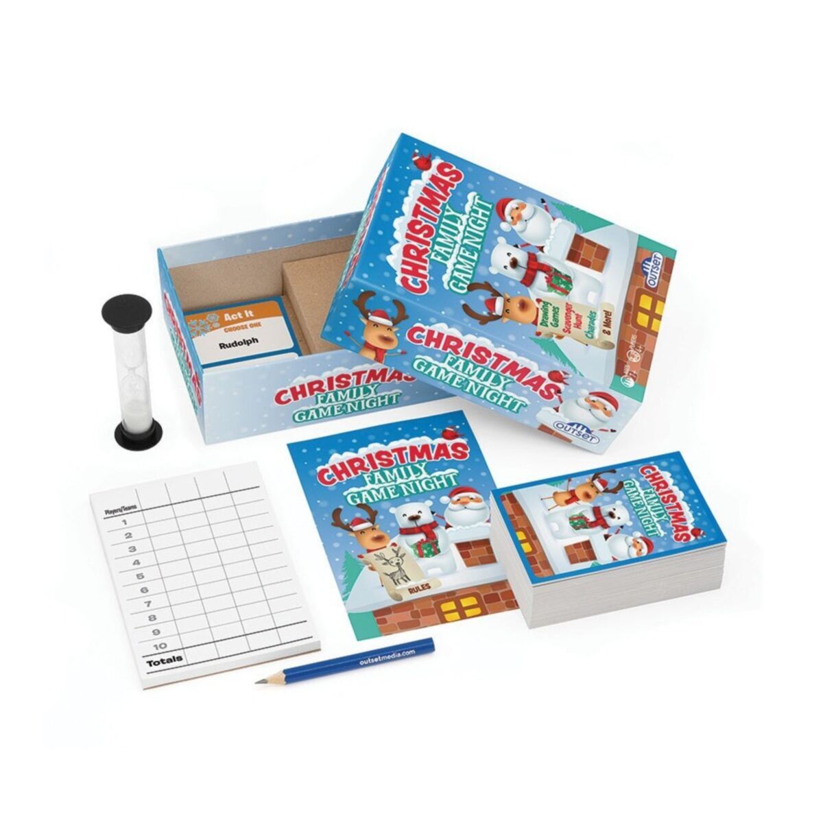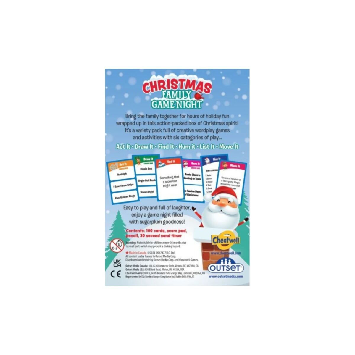 Bring the family together for hours of holiday fun wrapped up in this action packed box of Christmas spirit! It's a variety pack full of creative wordplay games and activities with six categories of play...Act It, Draw It, Find It, Hum It, List It, Move It!
