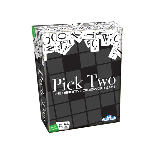 Pick Two is the always changing, ever rearranging crossword game! Players draw letter tiles and build their own personal crosswords as fast as they can. Whenever players use all their letters they yell PICK TWO and everyone draws two more tiles. The catch? These tiles must now be added to your crossword. The best part? You can always change your crossword by rearranging letters and even words to use up your tiles.