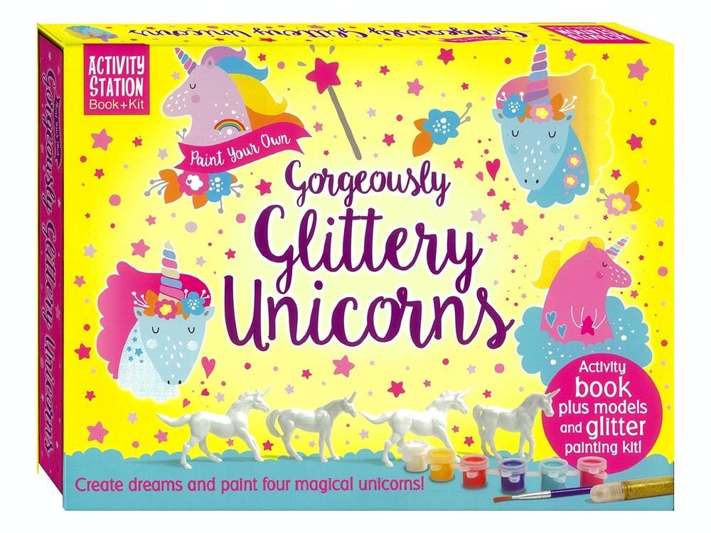 Create four enchanted unicorns using this magical paint your own kit. With instructions, paintbrush, paints, and scene backdrop.