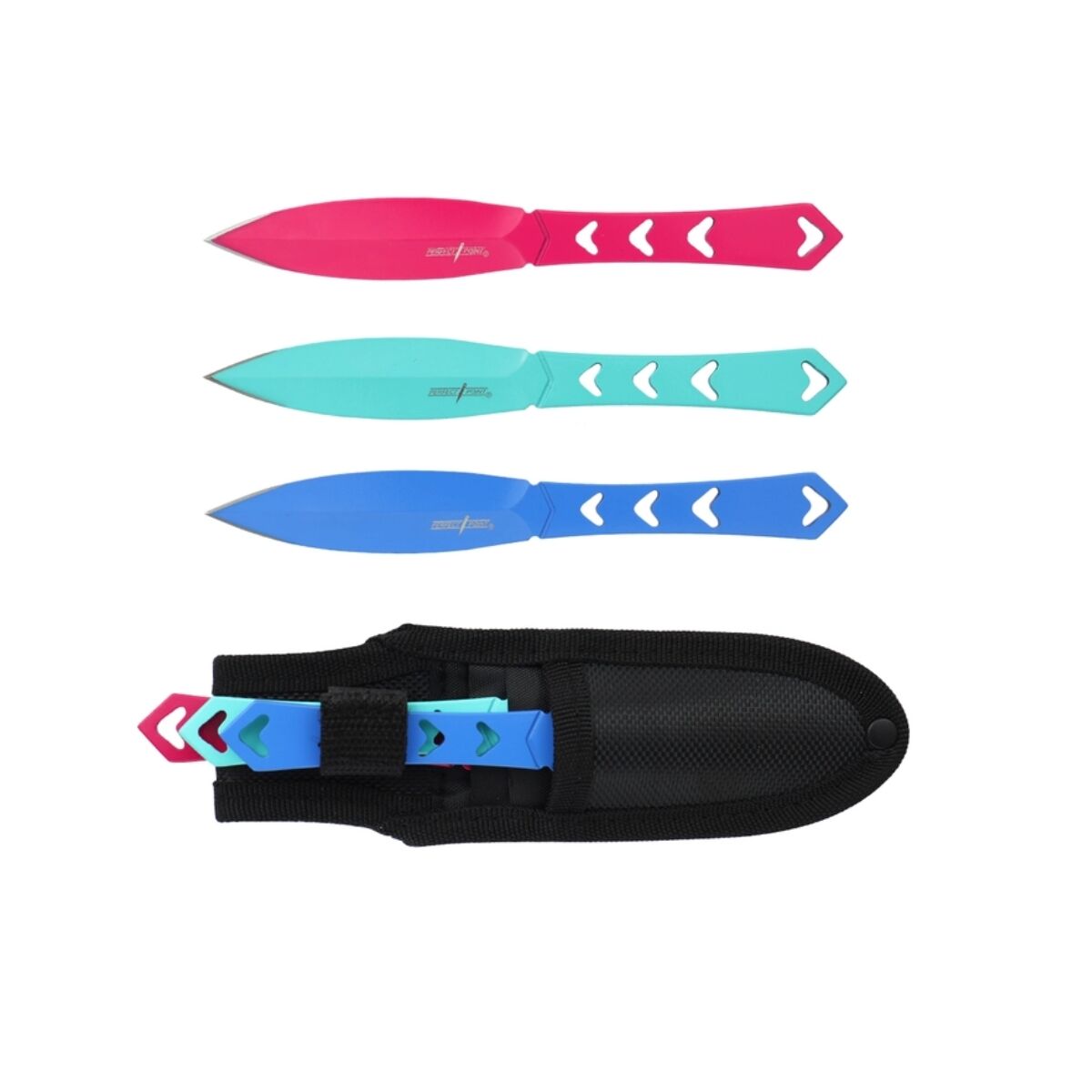 The Perfect Point Throwing Knife Set combines sleek style with solid construction, making it an excellent choice for precision throwers and collectors alike. With a compact overall length and full tang design, these knives are built for durability and balance. Each set comes complete with a nylon sheath for safe storage and easy transport.