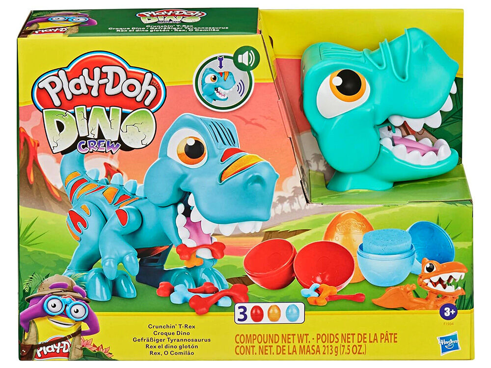 So many hilarious ways to get creative with this Play-Doh T-Rex toy for kids 3 years and up! Imagine prehistoric adventures again and again with the green dinosaur figure, pterodactyl friend, and 3 Play-Doh eggs filled with 2.5 ounces of non-toxic modeling compound. Hear the dino crunch, gulp, slurp, toot, and burp as kids engage the jaw-chomping action and watch Play-Doh bits go through the tummy and out the backside.