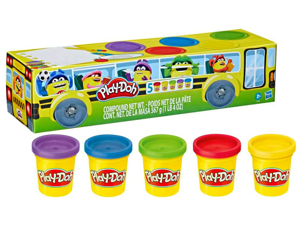 Jump-start your little scholars creativity for the new school year! The Play-Doh Back to School 5-Pack contains 5 cans of modeling compound in a cute school bus box. Delightfully bright, school-inspired colors! Set comes with red, yellow, green, blue, and purple cans of classic Play-Doh modeling compound.