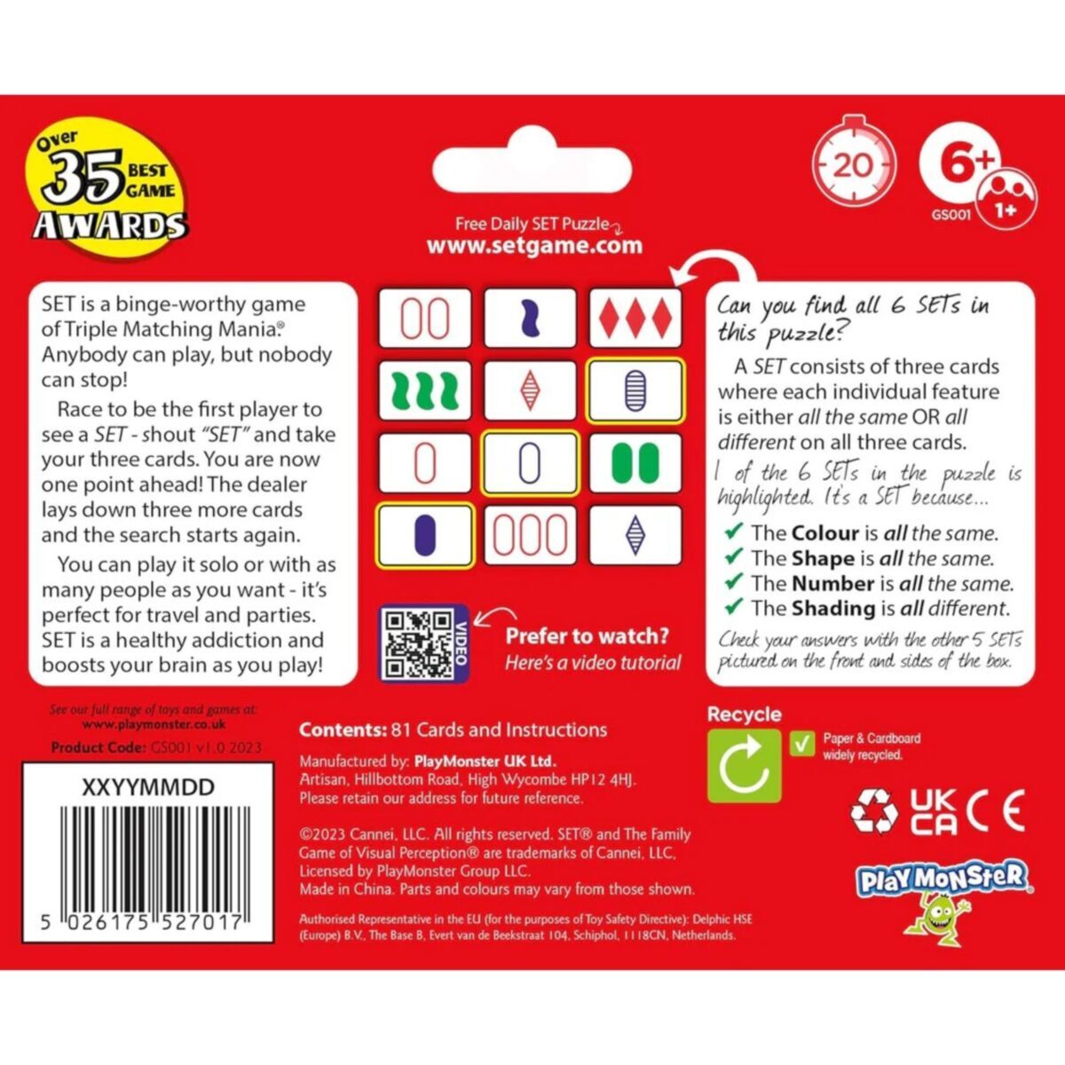 SET: The Family Card Game of Visual Perception