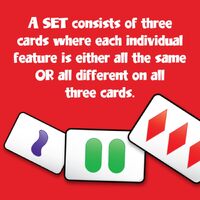 Shout SET, and everyone checks to see if you have discovered the three cards that form a SET from the twelve laid face up on the table. You are now one point ahead, and the dealer lays out three more cards. The search starts again. There are no turns, so you don't wait to pick up the action. Age is no advantage in this game, so try this on your parents! Winner of 12 Best Game Awards.
