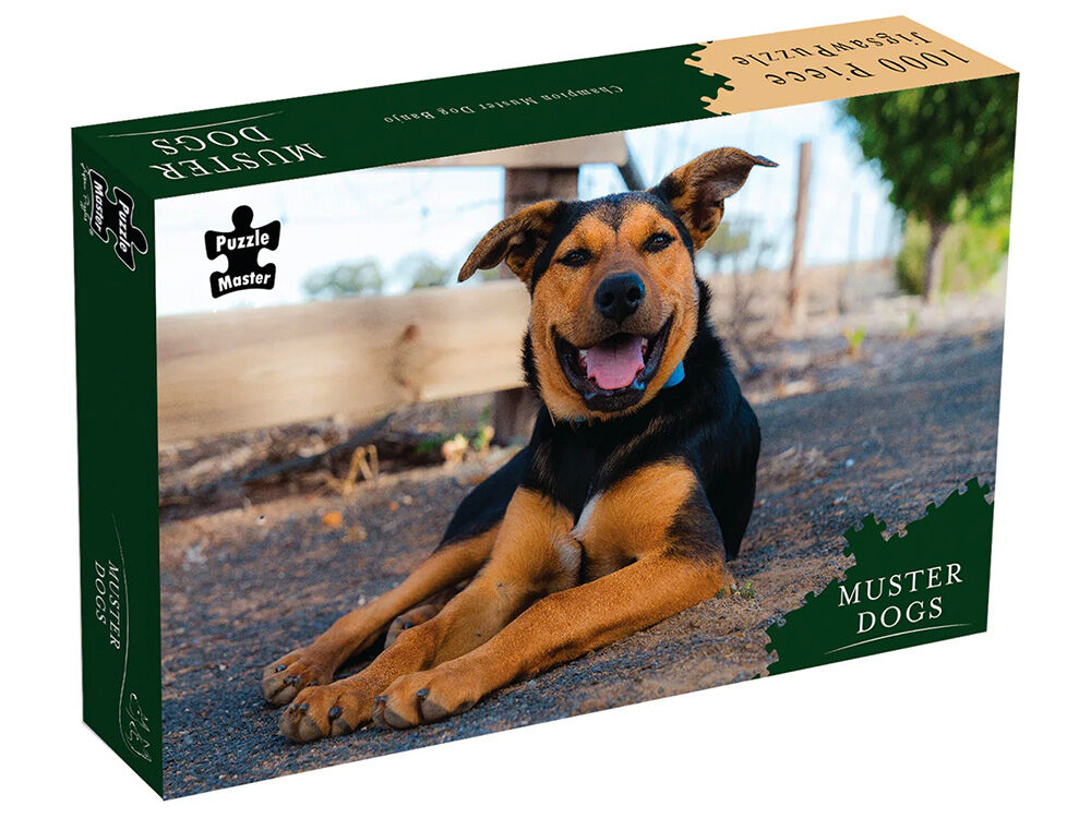Piece together the journey of a loyal and hardworking Australian Kelpie with the Puzzlemaster 1000-Piece Jigsaw Puzzle "Lively, Lovable Muster Dog Banjo." Part of the Muster Dogs series, this stunning puzzle captures this remarkable working dog's spirit, intelligence, and charm as it matures into a true outback companion.