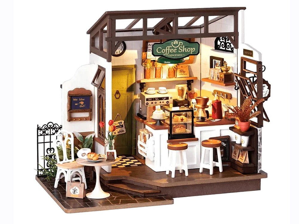 Rolife DIY Miniature House - Flavory Caf DG162. Step into this miniature haven and let your imagination take flight as you savor the beauty of a premium coffee shop from the comfort of your own space!
