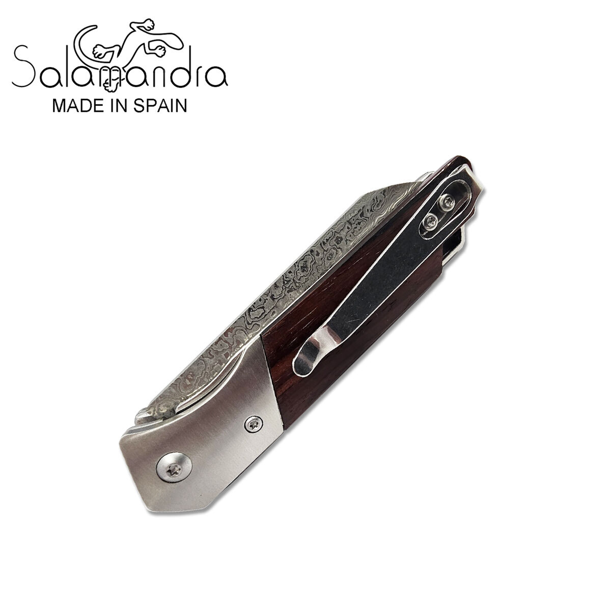 The Salamandra Damascus Steel Pocket Knife is a high-quality pocket knife hand made in Spain.