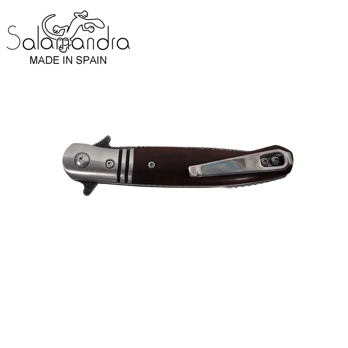 Salamandra Damascus Steel Cocobolo Pocket Knife 209mm is a high-quality pocket knife hand made in Spain.
