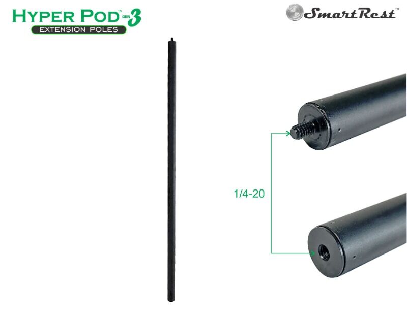 The Hyper Pod 3 complete kit is a monopod trigger pole, with a quick release knuckle attachment which attaches to the pic rail on the fore end of a rifle stock and a bipod on the base & a 70cm extention pole.