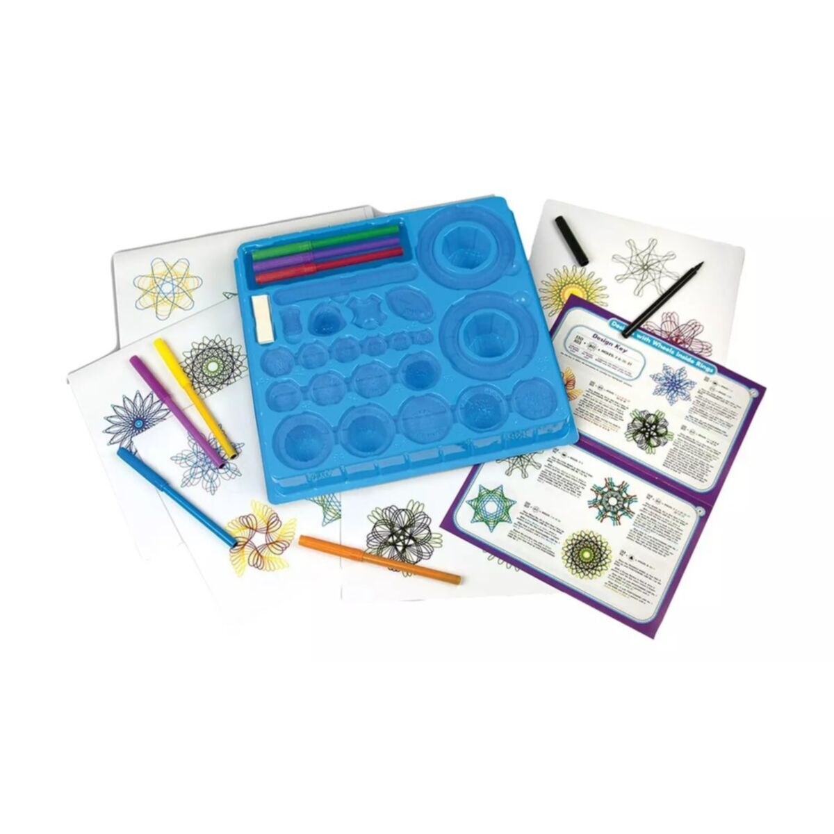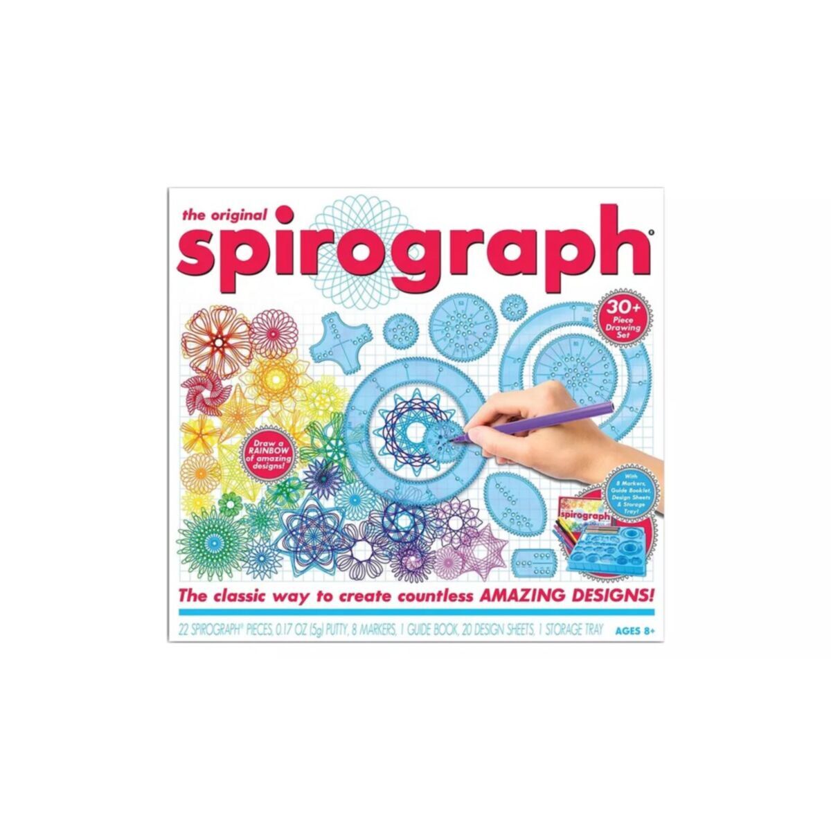 Round and round you go until you have an intricate spiral-design! It's fun and easy for any age. This 30+ piece drawing set includes 22 precision parts, felt tip pens, design paper, a guide booklet and a storage tray! When you're ready for more fun, check out one of the other Spirograph sets.