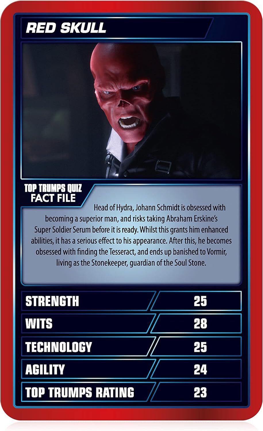 Lay out your best cards on the Battle Mat and see how they compare to your opponent's forces, in this competitive card game that relies on your knowledge of the MCU. Categories include Strength, Agility, Wits and Technology. Is Iron Man's Strength enough to claim victory, or will Black Widows Agility outsmart your foe? Maybe Spider-Man or Captain Marvel have a few tricks up their sleeves. Deploy the six Infinity Stones Time, Mind, Reality, Soul, Power and Space for unexpected abilities to mix up gameplay and get one over on your opponent, and take 7 battles to win Battle Mat.