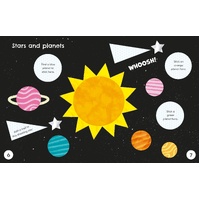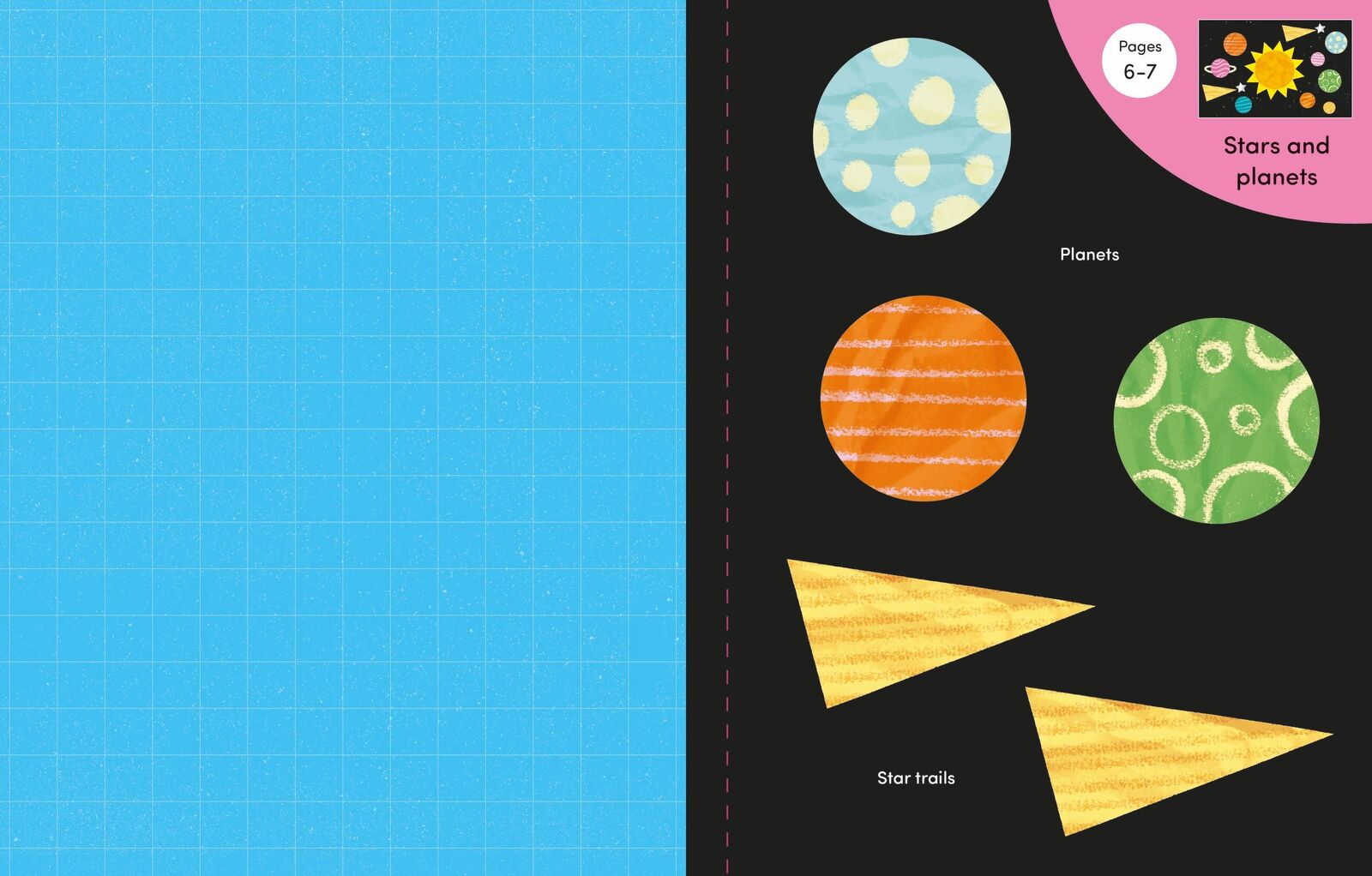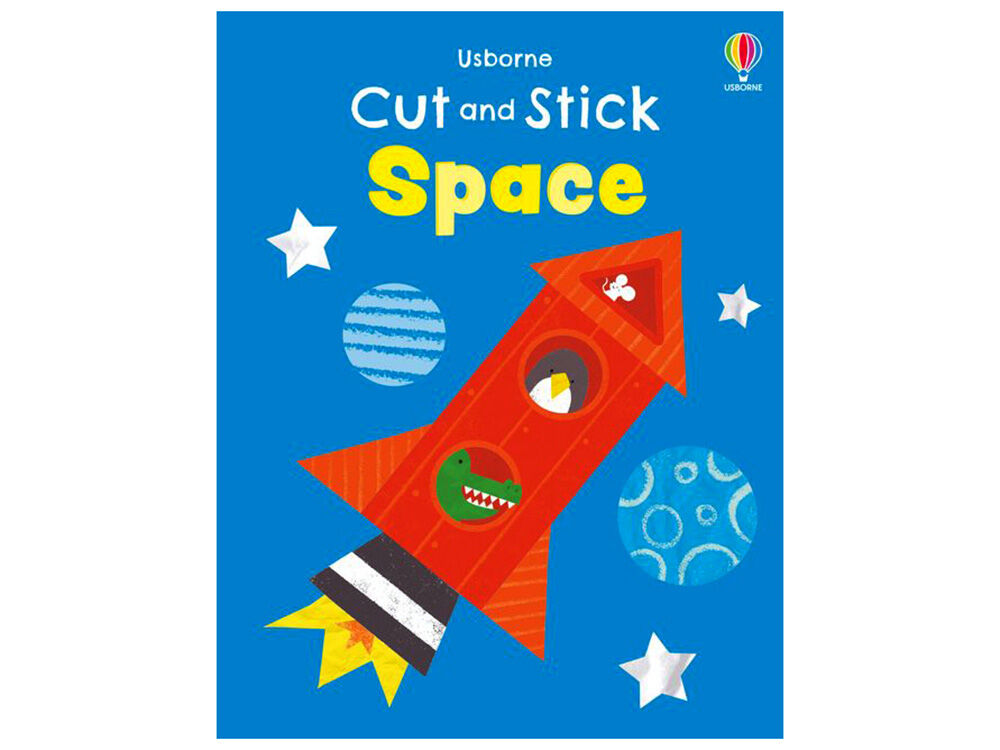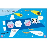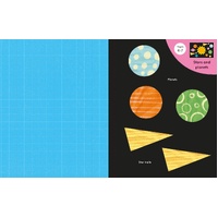 All you need is scissors and glue to create out-of-this-world pictures in this cutting and sticking book. Children are invited to cut out shapes from the paper at the back of the book and glue them onto the illustrated scenes. The large shapes to cut around are perfect for little hands to follow and provide a fun way to practise scissor skills. From rockets and space shuttles to planets and friendly aliens, there are all sorts of exciting space pictures to create in this imaginative book.