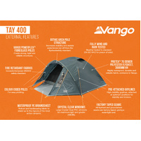 The Tay 400 4-man tent is a dome style tent which adds space within the tent and benefits from a small pack size.
