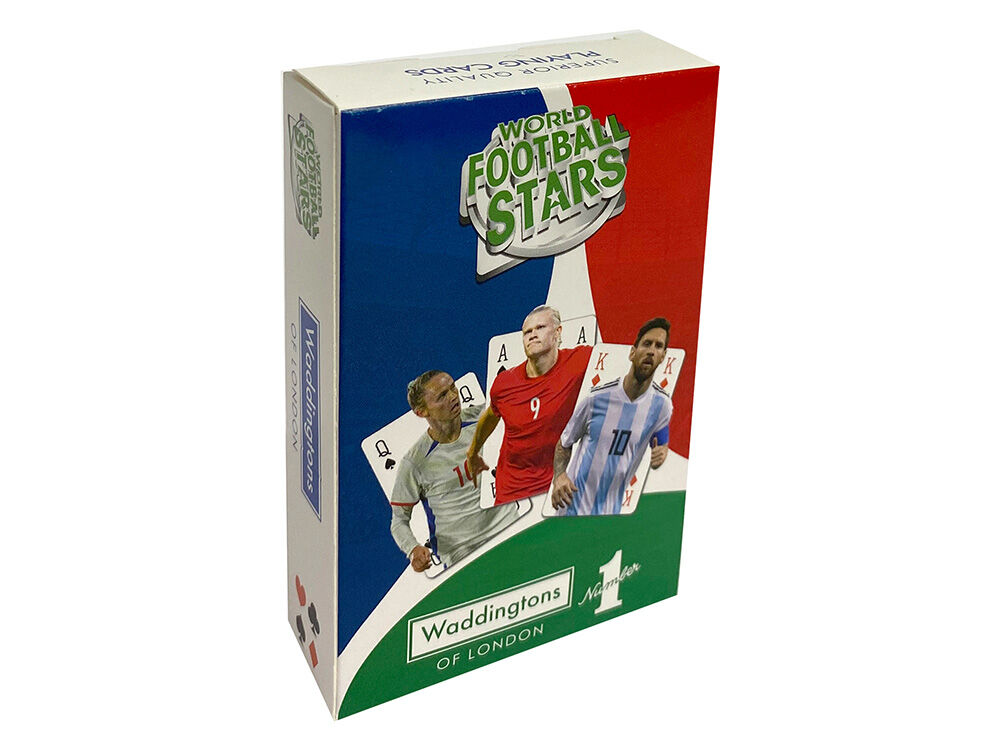 Celebrate the global game with World Football Stars playing cards, featuring today's most iconic players like Lionel Messi, Erling Haaland, and Caroline Graham Hansen. Perfect for fans and collectors alike, this premium deck brings football flair to every hand. Play, collect, and relive the magic of the beautiful game.
