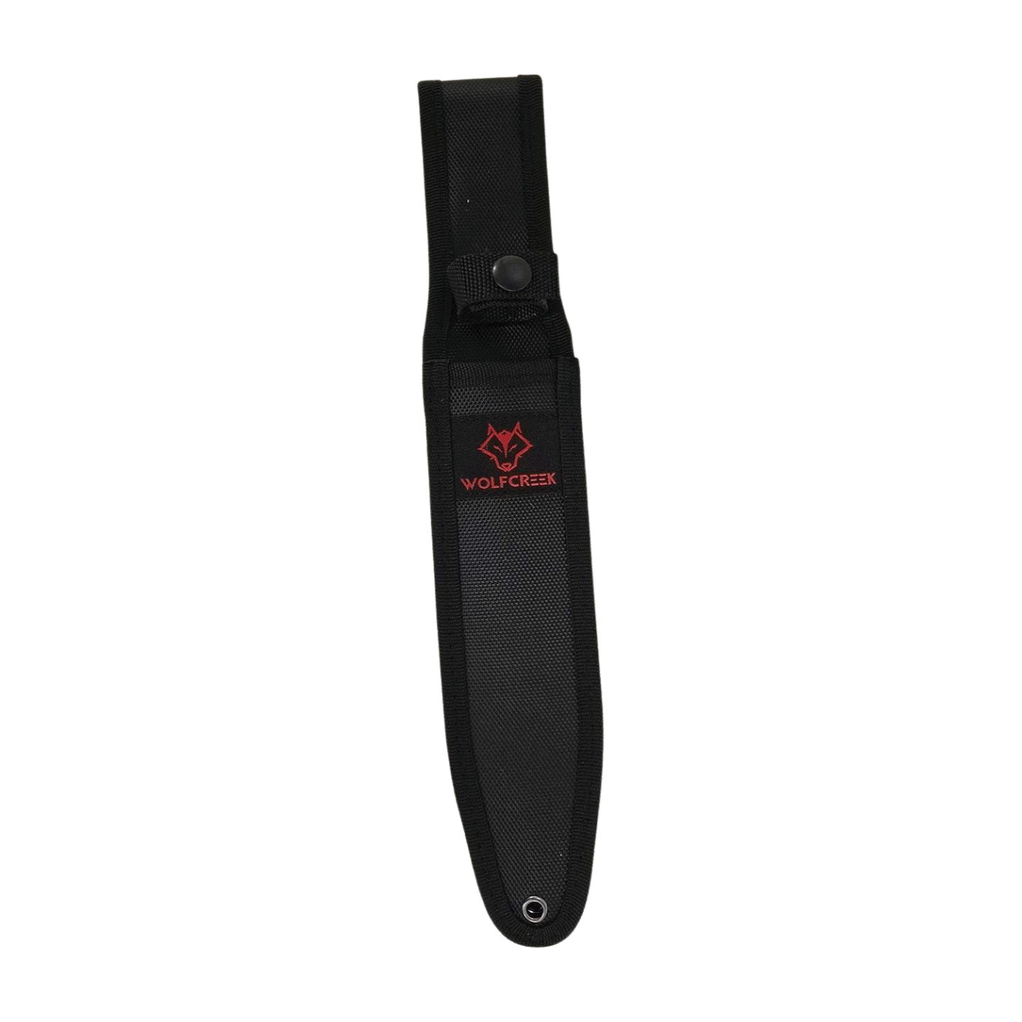 Wolf Creek Double Edge Pig Sticker Hunting Knife with 6mm thick full tang blade for strength and rubber handle for enhanced grip.